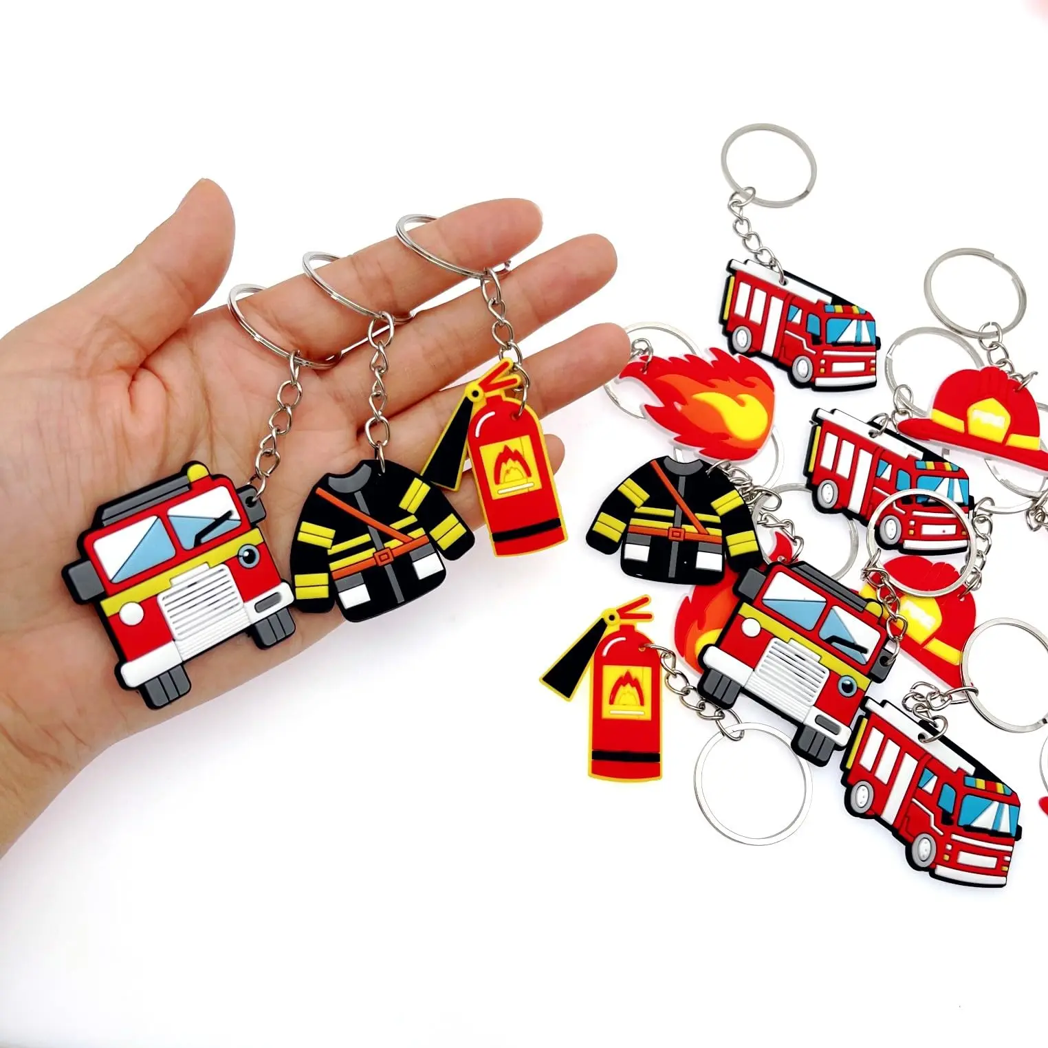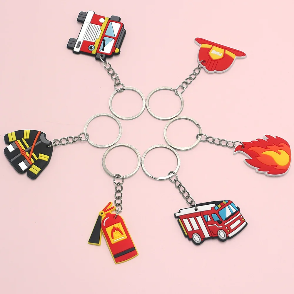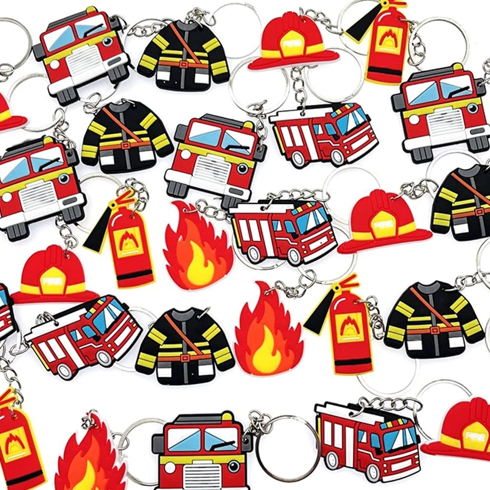 18/24/30pc Firefighter Keyring FireTruck Fire Extinguisher Fireman Helmet Jacket Keychain Fire Fighter Theme Birthday Party Gift