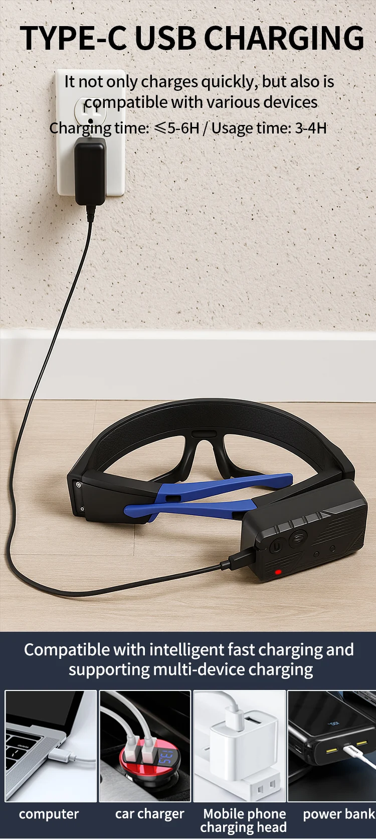 Package includes: Glasses light + USB cable + zipper pouch